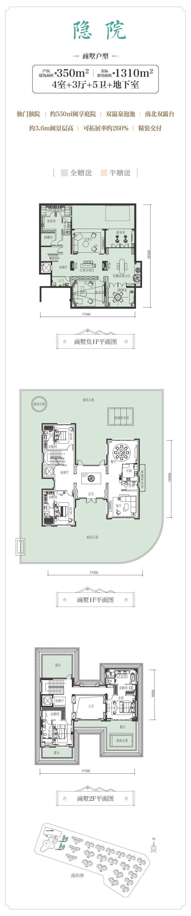 商墅丨产权建筑面积约350㎡,可拓展率约270%,实际使用面积约1310㎡